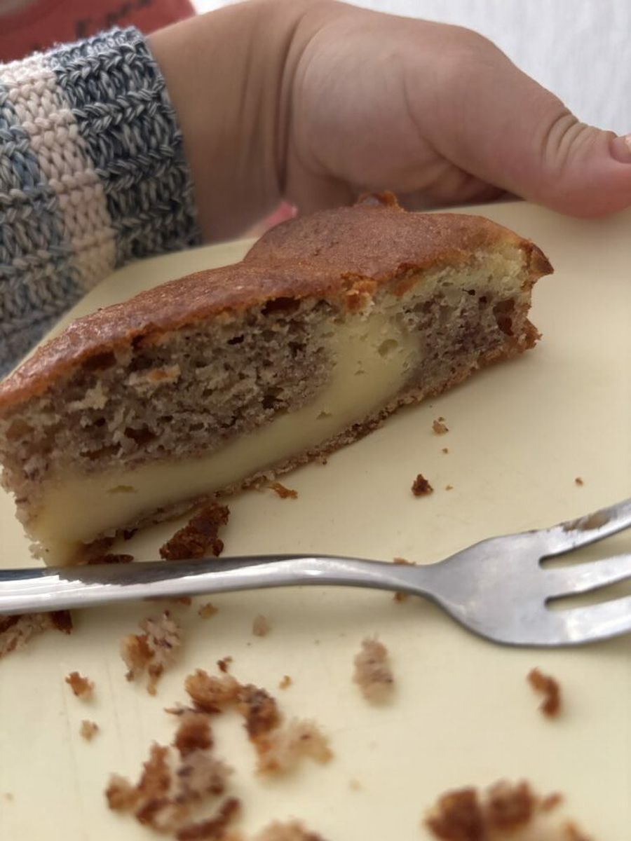 пирожок мне скорее понравился (конечно, банановым кексикам с шоколадной крошкой он проигрывает, но для разнообразия неплохо), нежный, не сухой, банановая часть не клеклая. Вместо сливочного сыра положила рикотту) ели несколько дней – не черствел, вкусовых качеств не потерял) Альтернатива приевшейся запеканке))