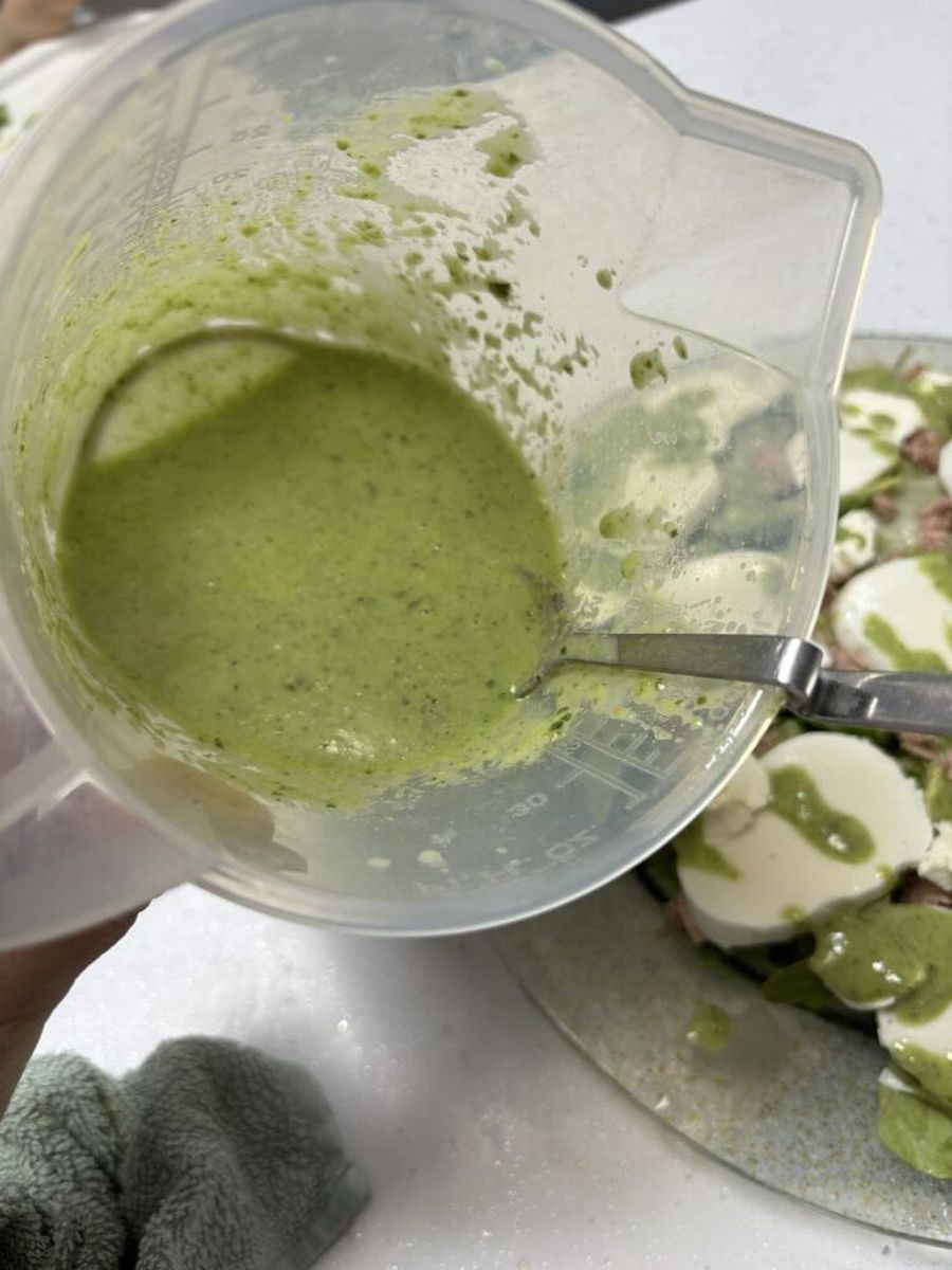 Эту заправку можно хранить в холодильнике 2-3 суток. Перед каждым применением встряхивать банку, если содержимое расслоилось.