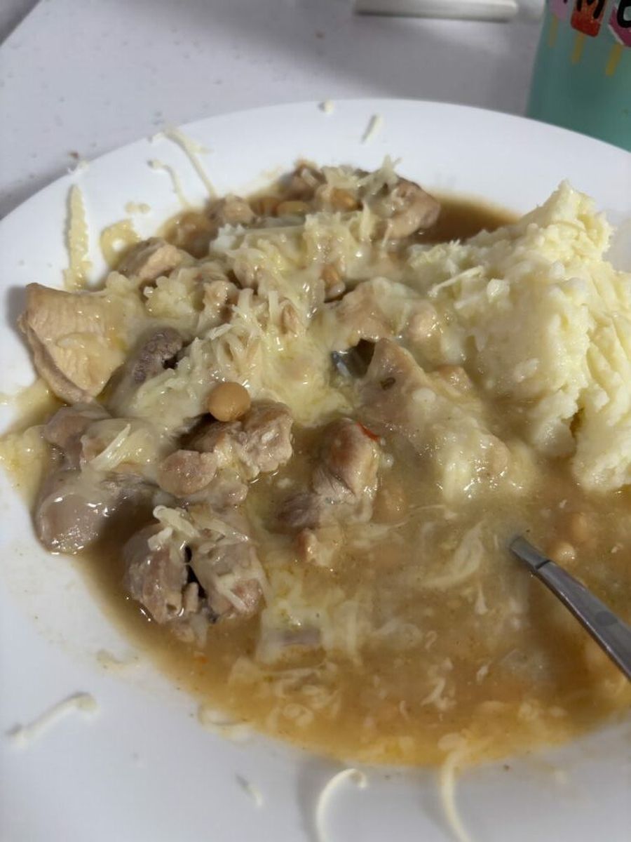Простите за глупый вопрос. Я совсем не поняла, как подавать с картофельным пюре… На фотографии чили выглядит, как густой супчик. А картофельное пюре куда? Рядом в соседнюю тарелку?