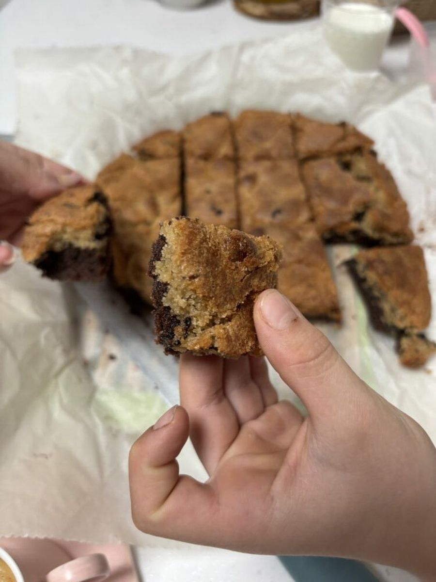 Дууууже насичений десерт. Безумовно смачний, але і солодкий. Робили на півпорції – усі інгредієнти зменшили вдвічі. Готується швидко. Найважче, це розрівняти тісто у формі 😄Моїм хлопцям дуже сподобалося, але для мене дуже солодко. З гіркою кавою або чаєм без цукру чудово смакує. Син сказав, що тільки з холодним молоком треба їсти брукіс 😉