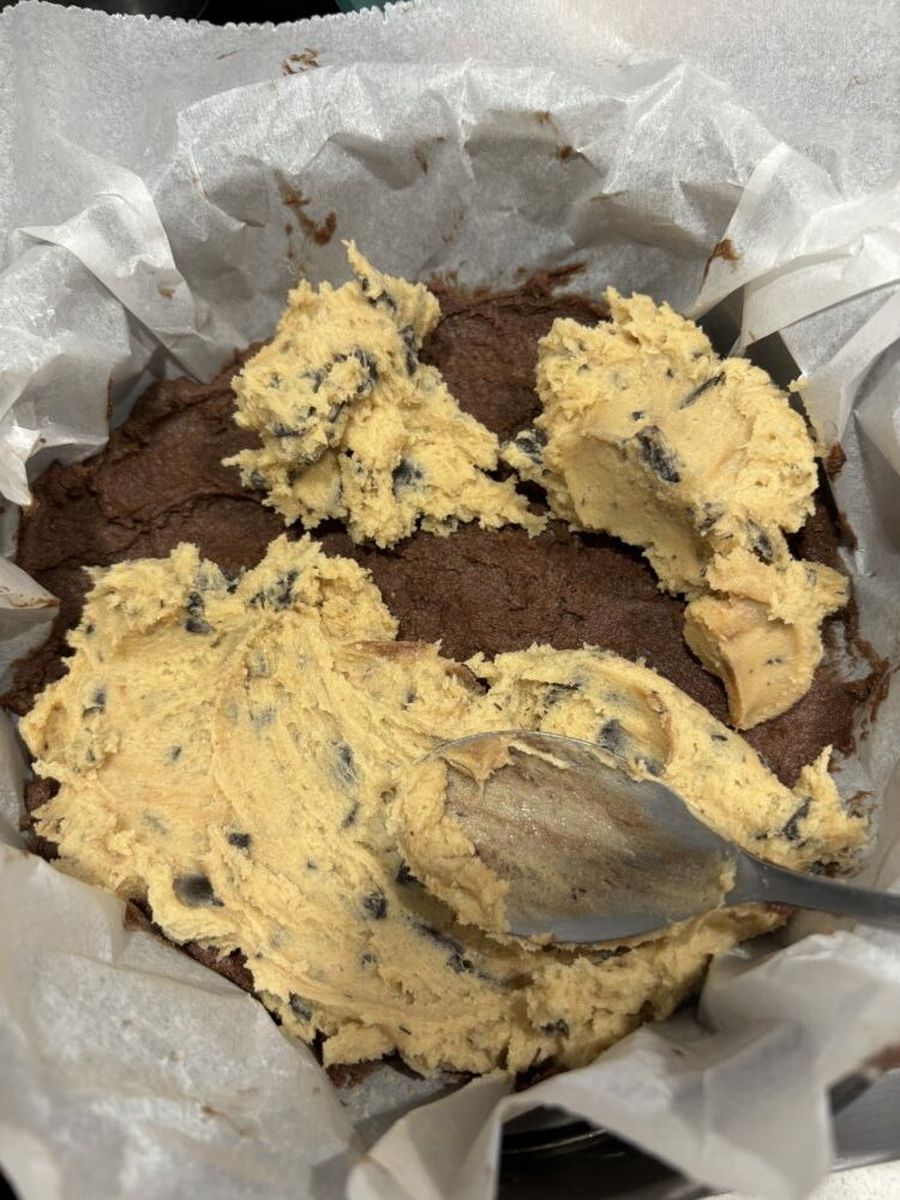 Укладываем поверх шоколадного теста и разравниваем.