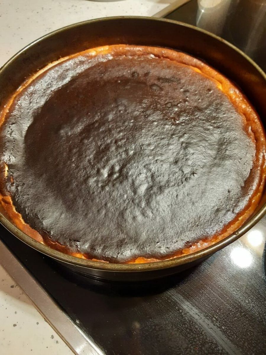 Верх и должен подгореть – он в английском называется Burnt Cheesecake – дословно ‘сгоревший чизкейк’.