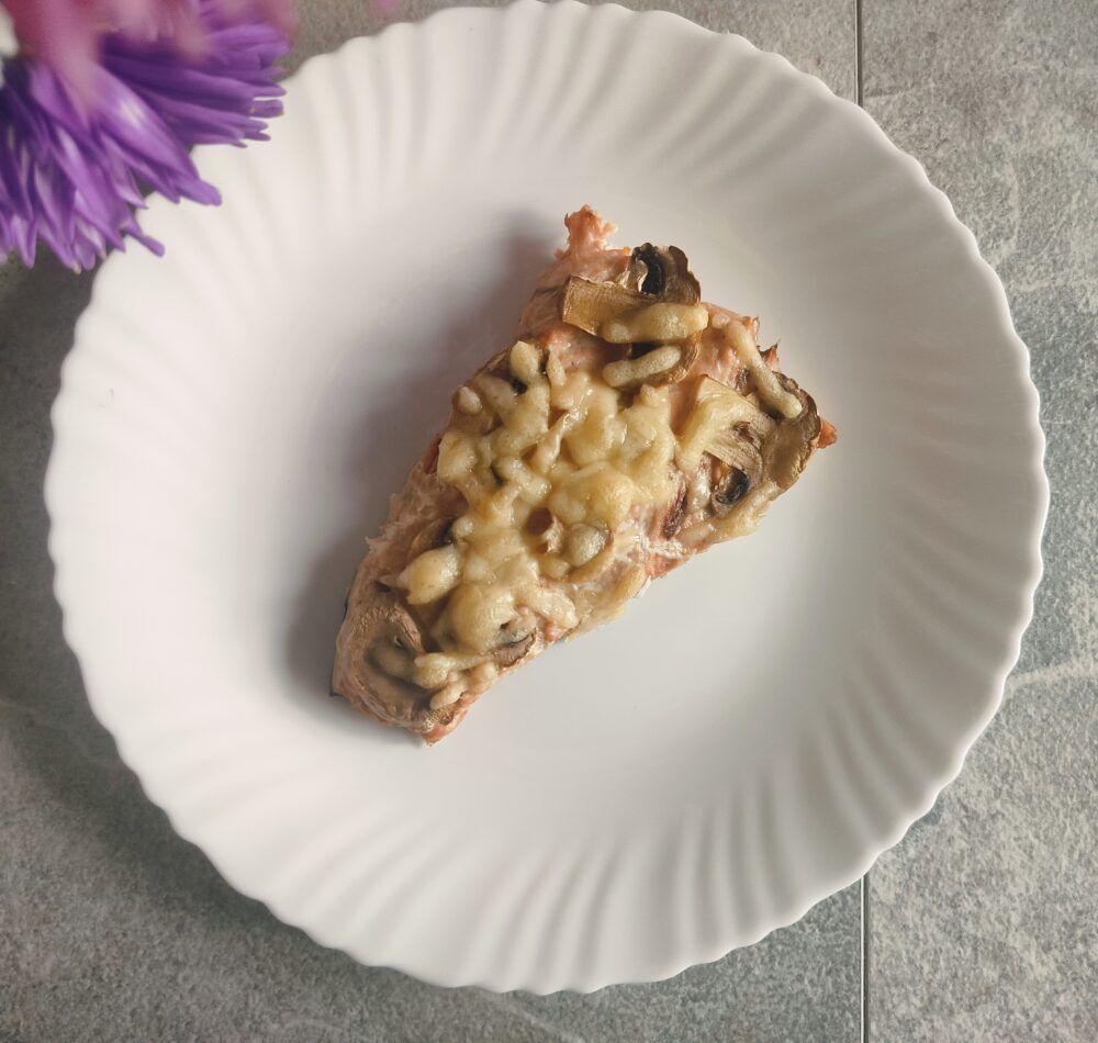 Источник: https://www.vkusnyblog.com/recipe/gorbusha-zapechennaya-s-gribami-i-syrom/Грибы нарезаем пластинками толщиной 3 мм.