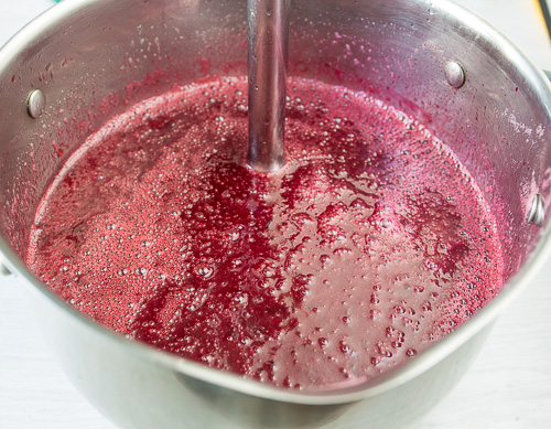 Доводим до кипения, затем снижаем нагрев до уровня ниже среднего и варим джем около 40 минут. Затем пробиваем его блендером.