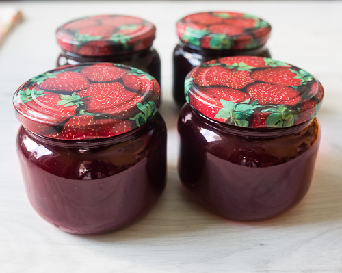 Разливаем по стерилизованным банкам и накрываем стерилизованными крышками. Закручиваем и переворачиваем на крышку.