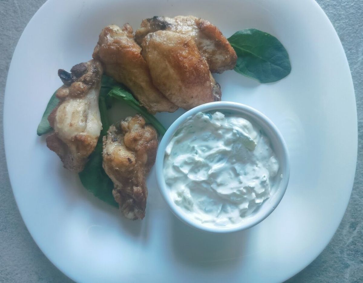 Крылья разрезаем на фаланги. Первые фаланги (кончики крыльев) выбрасываем или оставляем для бульона. Остальное кладем в миску, добавляем пряную смесь и перемешиваем.