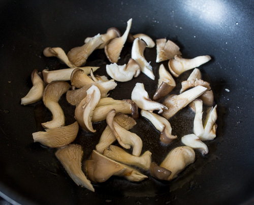 Точно так же, партиями, по паре минут обжариваем вешенки.
