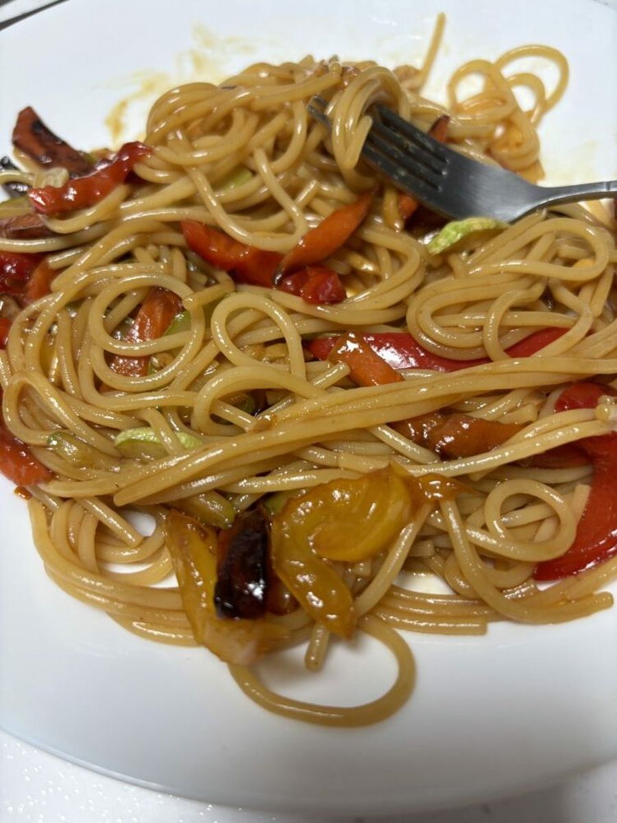 Делала с гречневой лапшой. Добавила 2 ложки сахара вместо трех. На мой вкус хватило бы и одной.