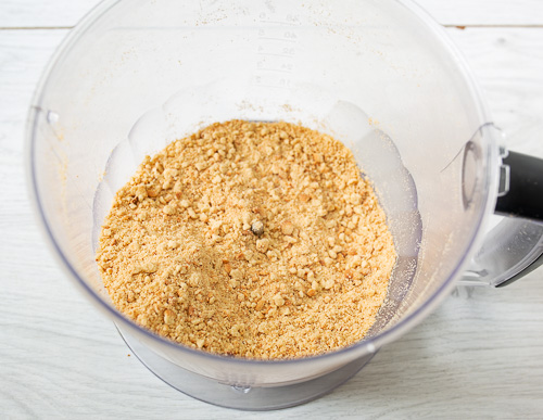 Для основы печенье перебиваем в крошку в блендере. Или кладем в пакет и разминаем скалкой.