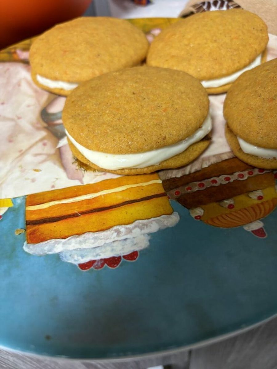 Перекладываем крем в кондитерский мешок без насадки. Срезаем носик и отсаживаем крем на половину печенья. Накрываем вторыми половинками и слегка прижимаем. Осторожно! Чтобы начинка не убежала 🙂