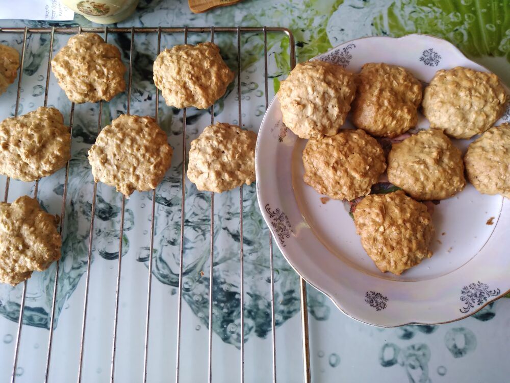 Изменила рецепт и получилось очень удачно: сахара добавила 90 г вместо 180 г, а из овсяных хлопьев сделала муку. На ночь тесто оставила в холодильнике. Получились очень мягкие печенья. Думаю, еще неплохо было добавить куркуму, цвет был бы повеселее.