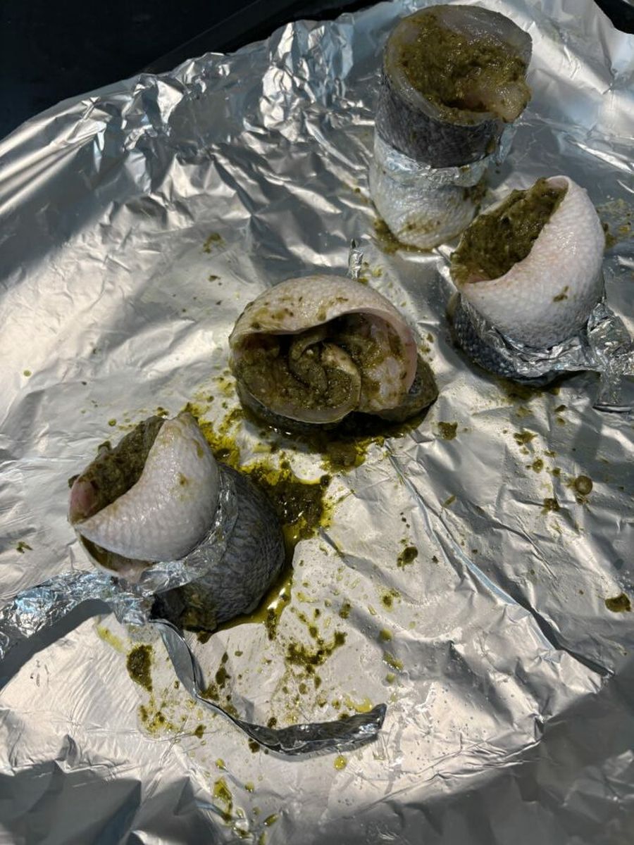 Ідеально! Сібас, напевно, одна з улюблених риб. А песто куди не додай – всюди він прекрасний 😀Тетяно, дякуємо за чергову смакоту. Рулетики важко скручувалися, але в готовому вигляді чудово тримають форму.