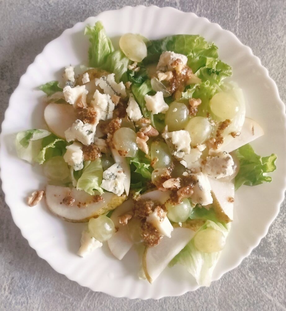 Стыдно признаться, но, будучи натурой, увлеченной кулинарией, к сырам с плесенью всегда относилась с непониманием: ну отталкивал запах, вкус, текстура и все тут! Удивлял ажиотаж вокруг. Все изменилось буквально за последние пару месяцев, распробовала и остановиться стало просто невозможно! Так что этот салат уверенно вошел в список моих любимчиков. Спасибо за то, что подталкиваете пробовать что-то новое и экспериментировать со вкусами!