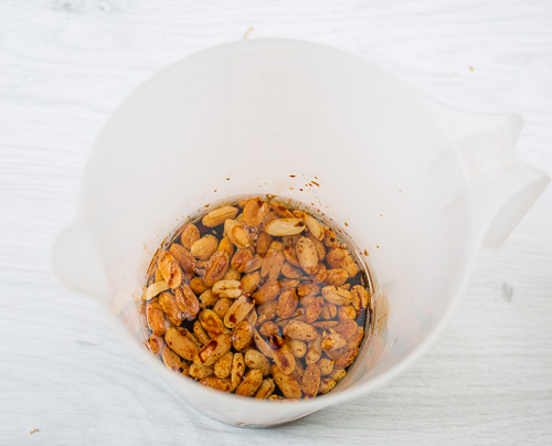Кладем все ингредиенты в мерный стакан.