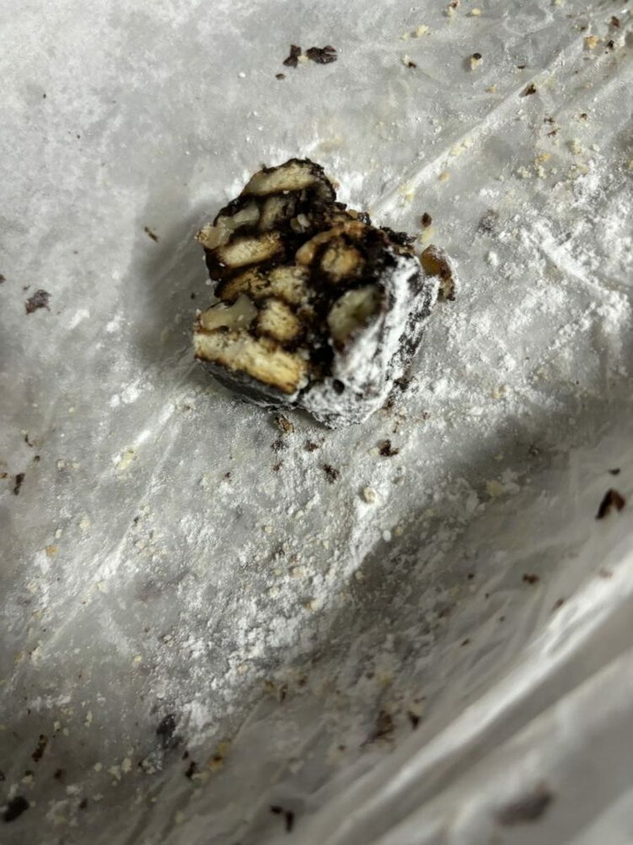 Даем немного остыть. Затем выкладываем на пергамент и формуем в виде полена.