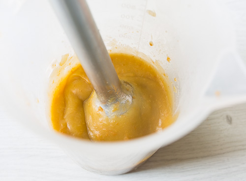 Запекаем до мягкости, около 25-30 минут (или меньше, в зависимости от сорта яблок). Вынимаем, даем немного остыть. Снимаем кожицу. Мякоть пробиваем блендером.