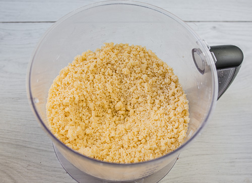 Если масса у вас получилась слишком сыпучей, добавьте 1-2 ложки холодной воды и снова пробейте. Если у вас нет блендера, можно перетереть массу пальцами (масло в таком случае лучше натереть на крупной терке).