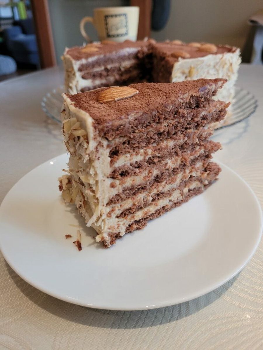 Интересный торт. Мне из за кофе в составе крема напомнило тирамису))