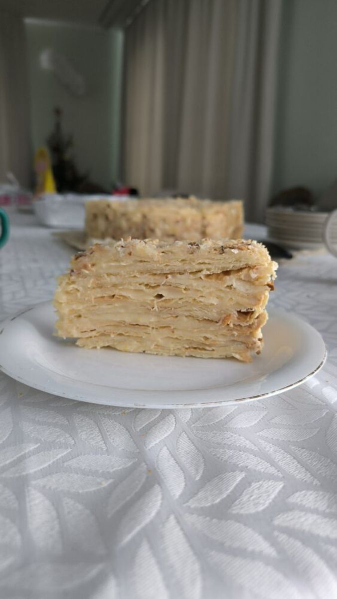 Насколько я понимаю Наполеон вообще бывает нескольких видов, но этот максимально приближен к тому что лично я считаю Настоящим Наполеоном. И рядом не стоял со слоеными Наполеонами из магазина. Хотя в моей семье раньше часто готовили этот слоеный, так называемый “Ленивый Наполеон”. Домашнего приготовления он тоже ничего.