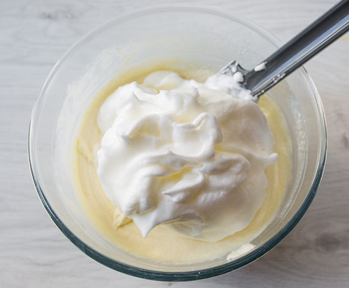 Источник: https://www.vkusnyblog.com/recipe/tvorozhnaya-zapekanka-s-vishnej/Яйца разделяем на желтки и белки. Желтки взбиваем с сахаром добела.