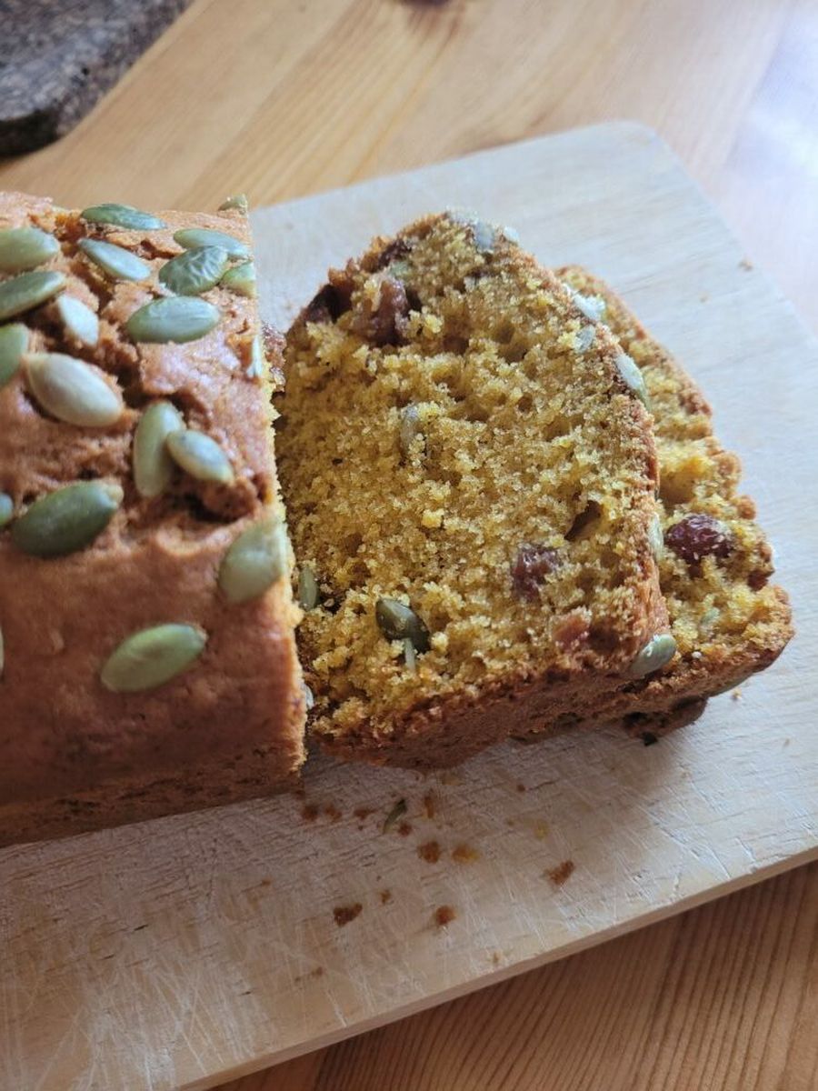 Выглядит красиво. Но вот уж точно не стал бы называть это тыквенным хлебом. Кекс -да, а вот настоящий тыквенный хлеб несколько другой.