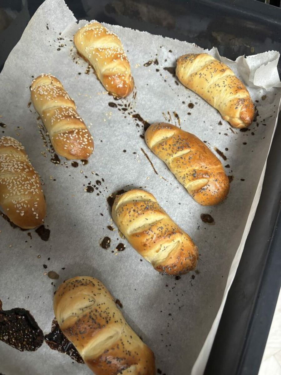 Завжди з нього все виходить, враховуючи, що вимішую лише руками. Що ми з нього тільки не робили. Цього разу були пиріжки з яблуками і просто булочки для бутербродів. Єдиний недолік-на наступний день вони вже зовсім не такі 🙁 Тому зʼїдати відразу 😁