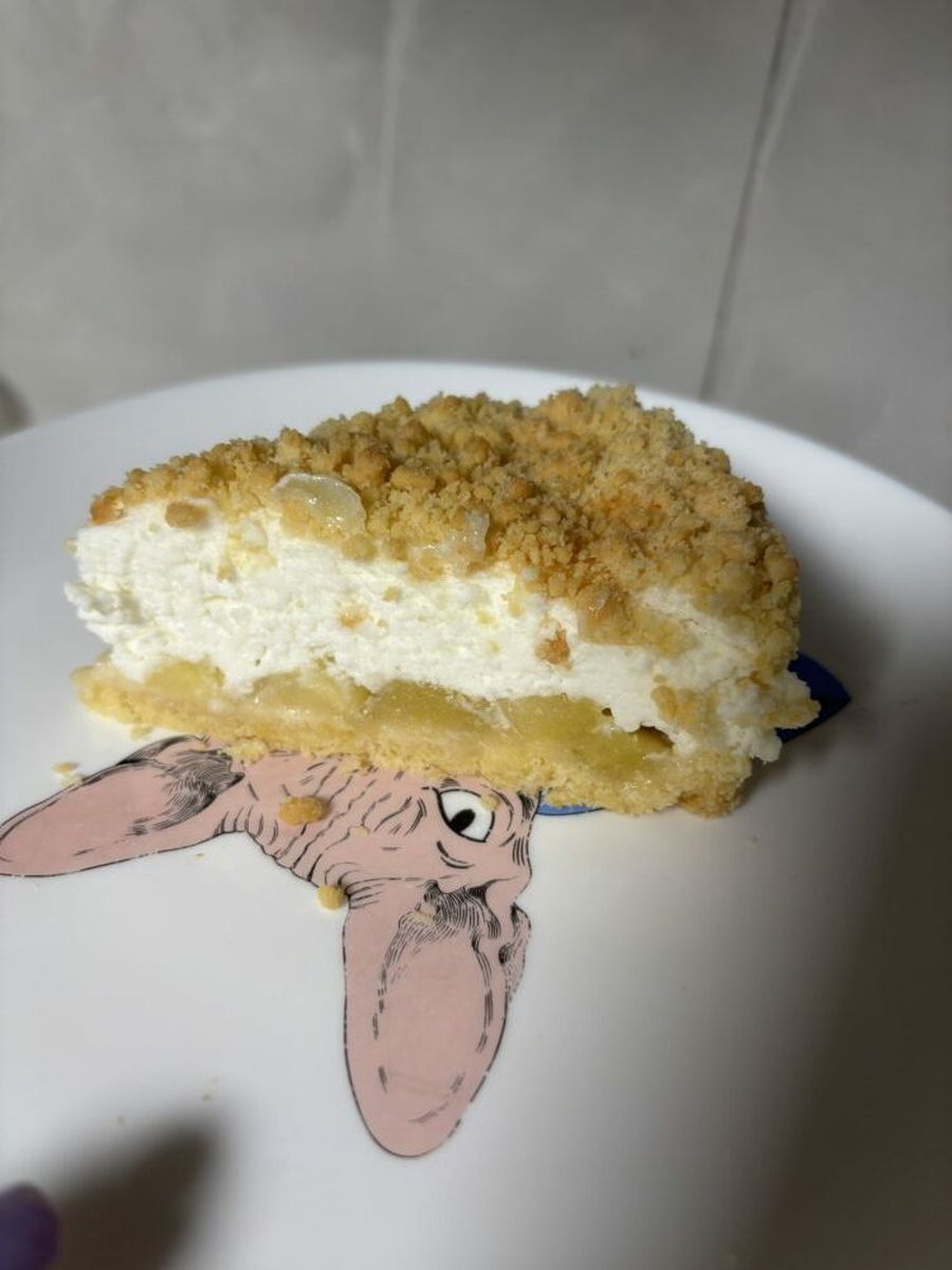 Это пирог на празднике произвел фурор. Очень вкусный, не приторный и даже я бы сказала изысканный. Яблоки заменила консервированными персиками, было очень к месту. Сметанной кислинки не чувствуется, суфле получается бомбическое.