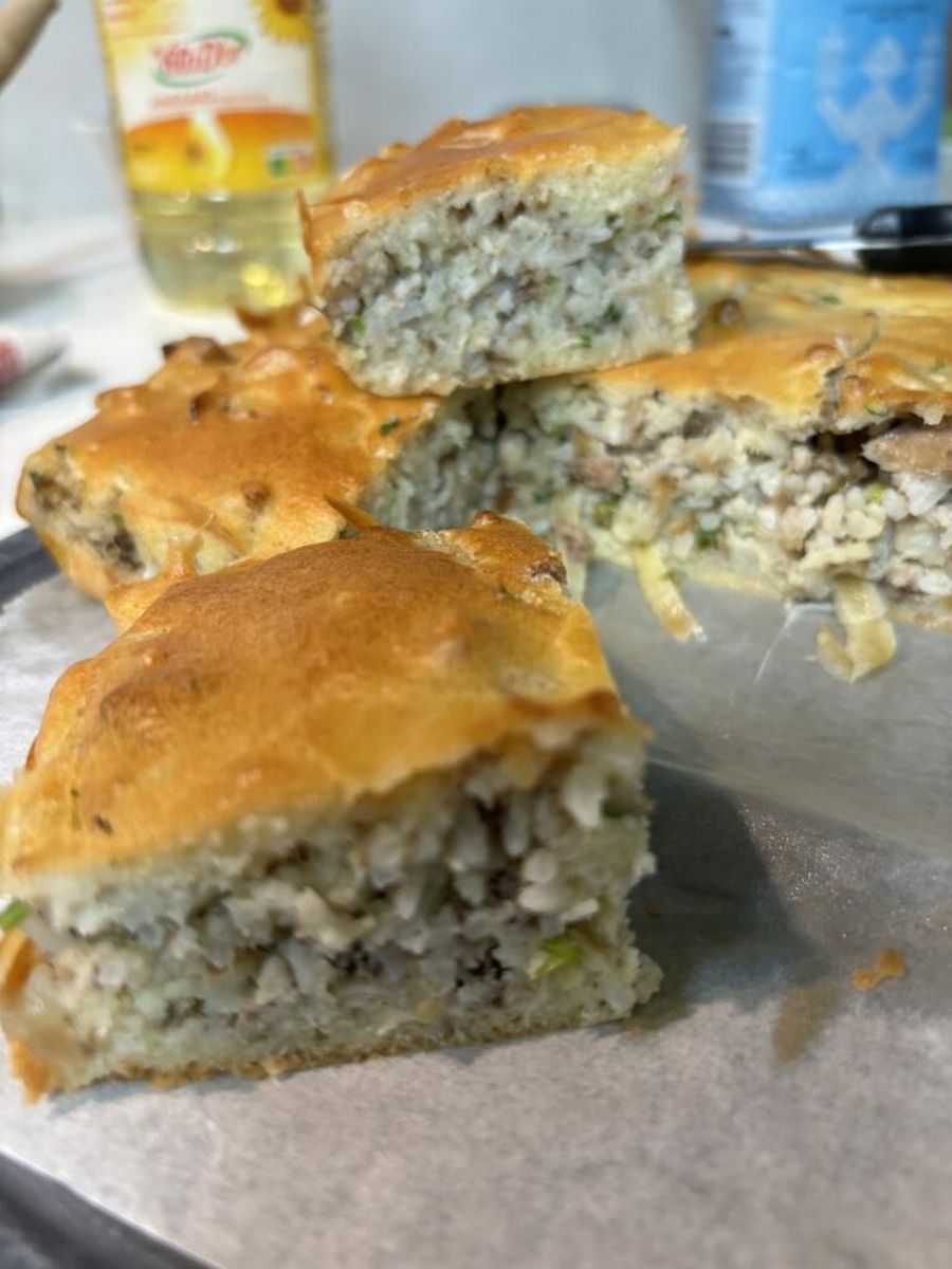 Тісто – мрія просто! Обожнюю швидко приготування 😉 Дівчата писали в коментарях , що роблять тіста вдвічі більше,а у нас навпаки. Любимо соковиту начинку і побільше 😃Я навіть трішки вершків линула, бо з рисом якось сухо вато здалося. Робили за рецептом Тетяни пиріг з тунцем – відпад. Якщо чесно, з тунцем смачніше, ніж із сардинами 😄але також дуууже смачно. Дякуємо вам за різноманітність на наших столах 🩷