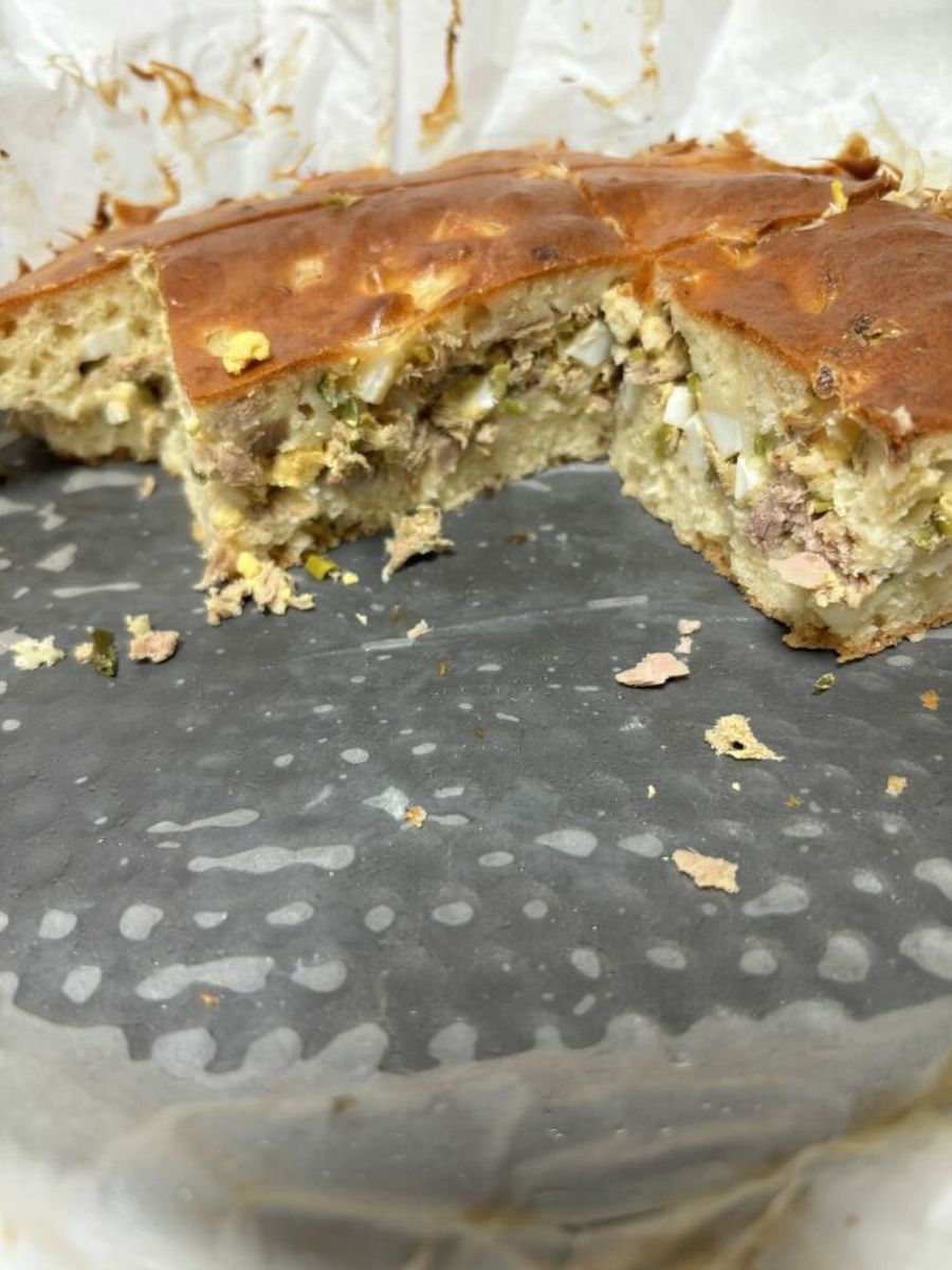 Вкусный и простой пирог. На всё про всё ушел час. Тесто готовила точно по рецепту, вместо тунца была сардина в оливковом масле, лук заменила петрушкой. Готовила в форме 24 на 24, но теста на такую форму маловато, верхний слой еле размазала. Попробую в следующий раз взять форму поменьше.